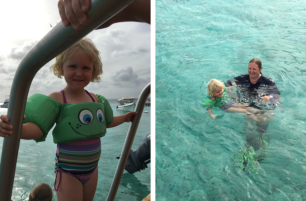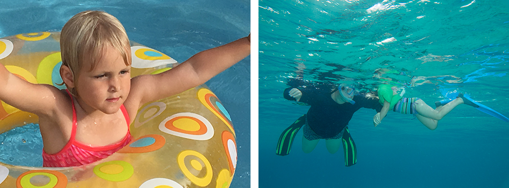 Becky preferred her froggy waterwings although notice she has fins, too.