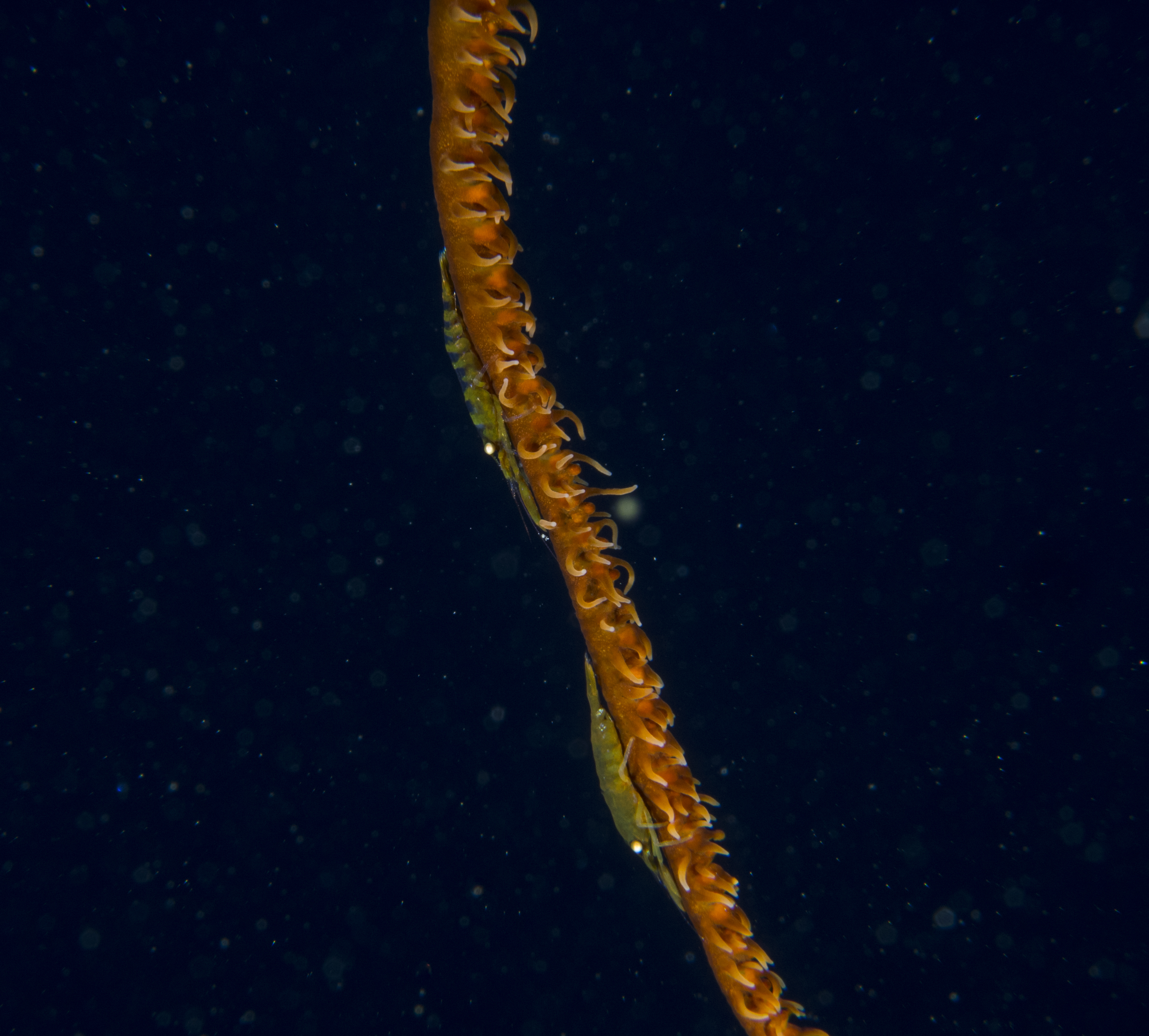 Wire Coral Shrimp. We've seen these in Indonesia but didn't even know they existed in the Caribbean. The wire coral is the thickness of a pencil.
